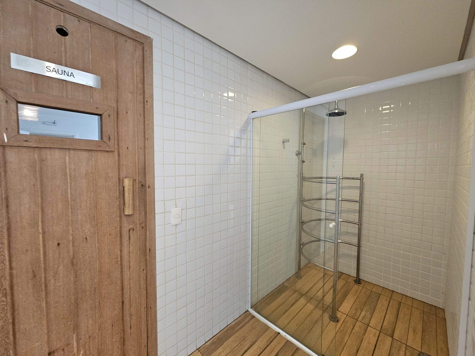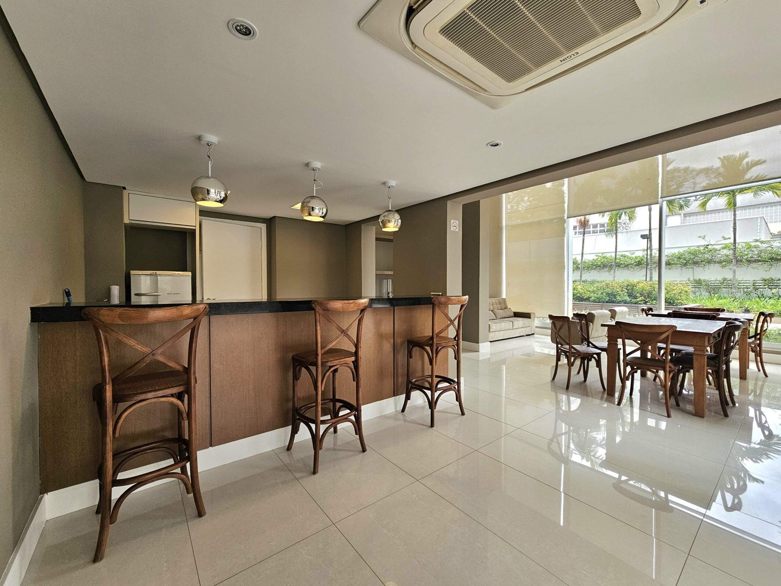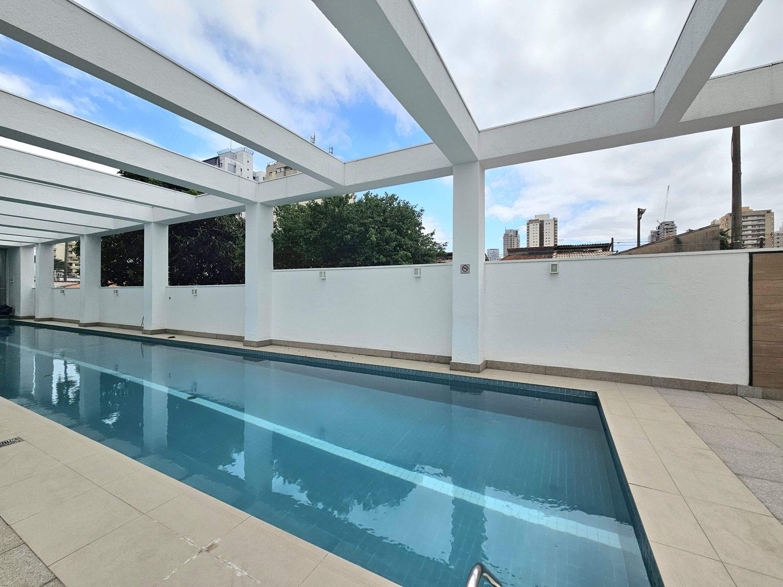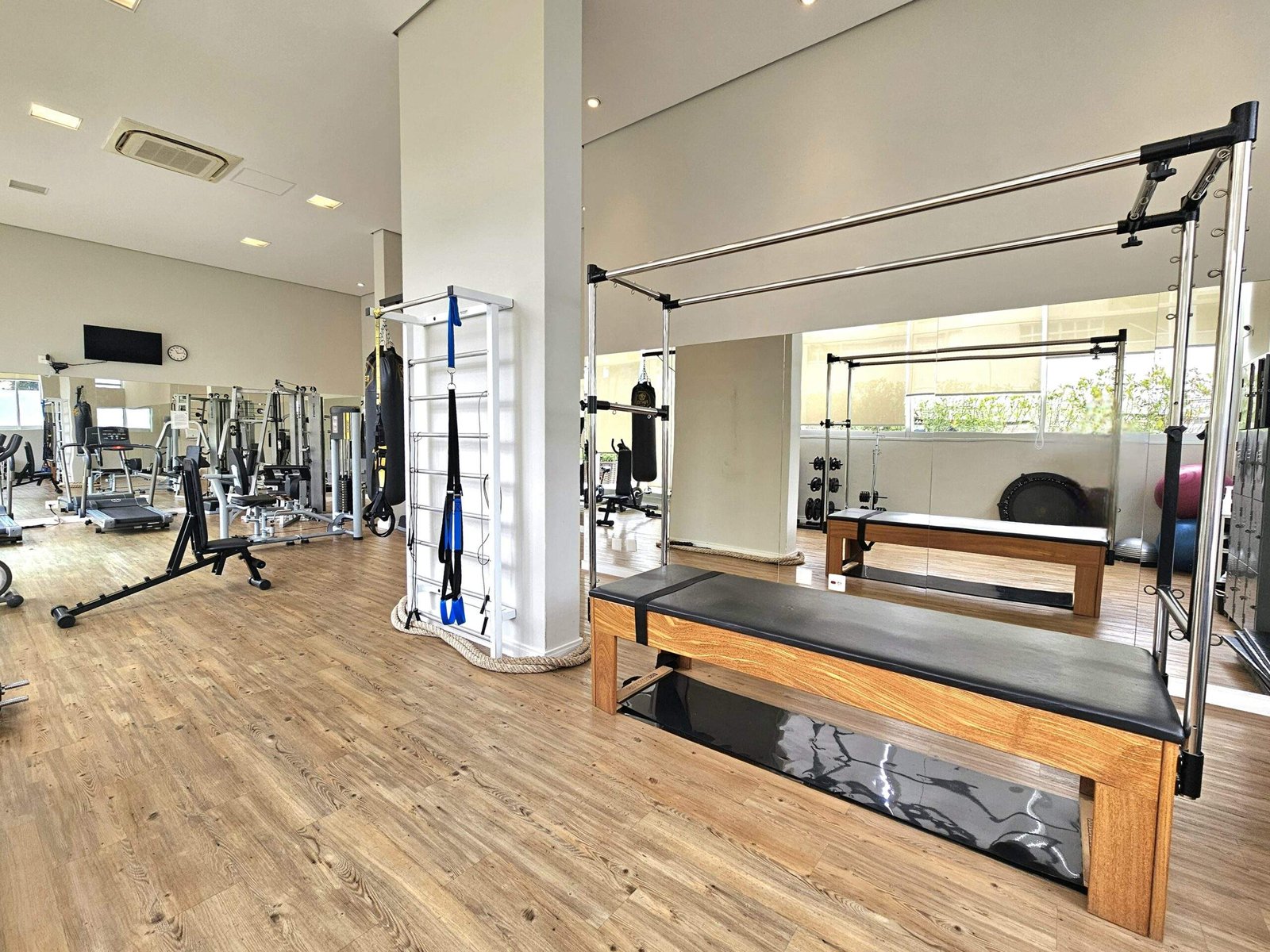 O prédio tem portaria 24h, vagas de visitantes, academia com pé-direito duplo, sauna, piscina com raia, salão de festas e um belo jardim frontal com recuo.