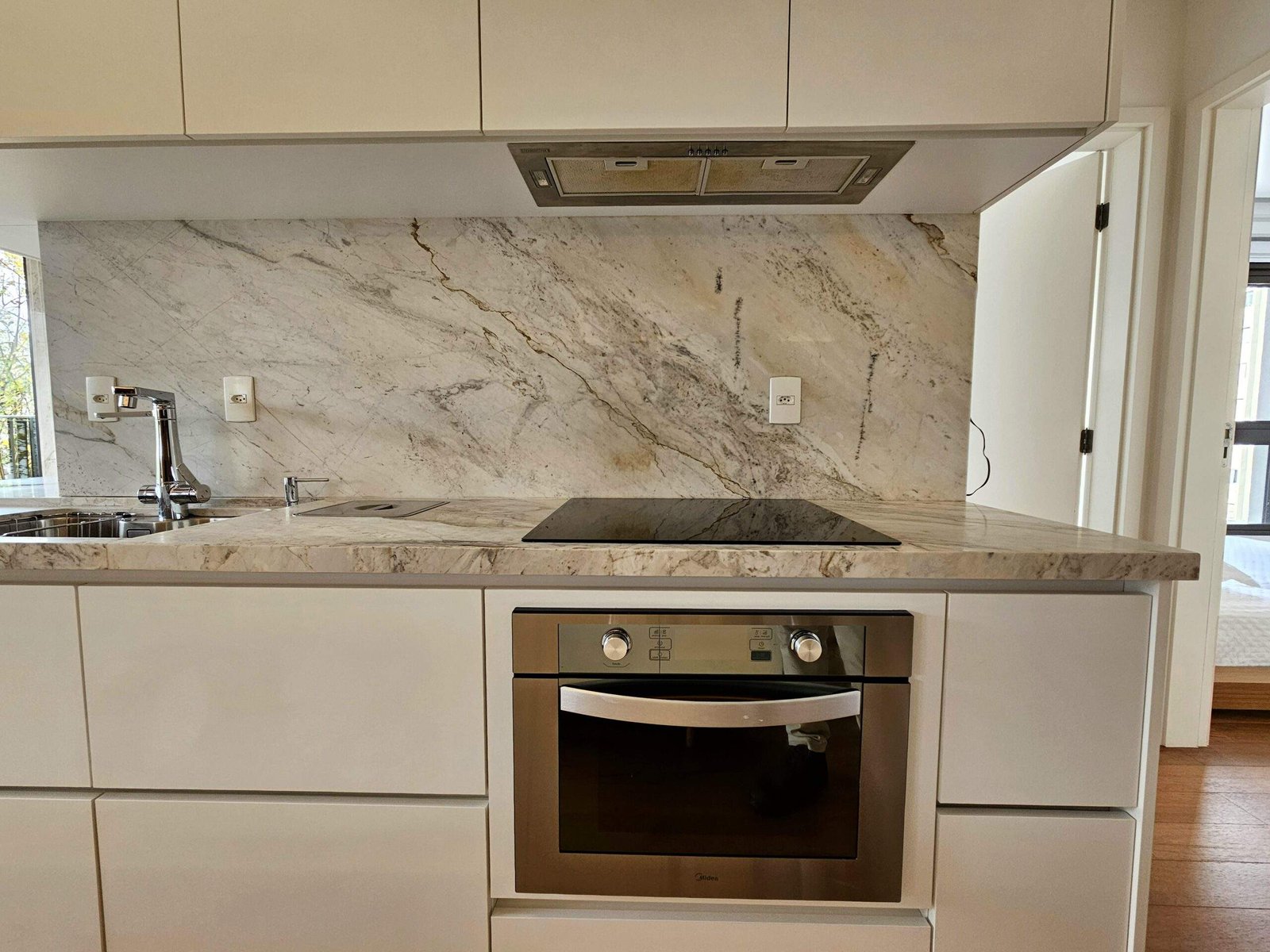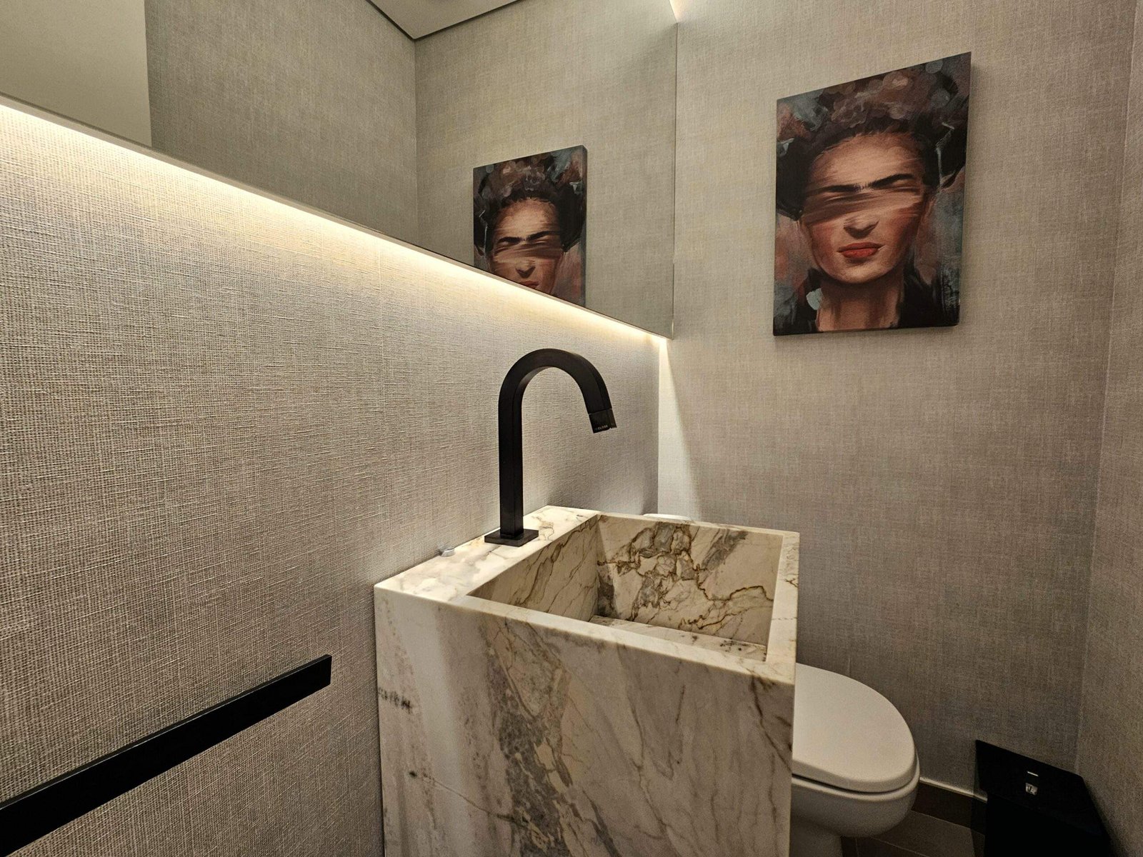 Bancadas da cozinha e lavabo em quartzito (mesma jazida utilizada no Hotel Rosewood)
