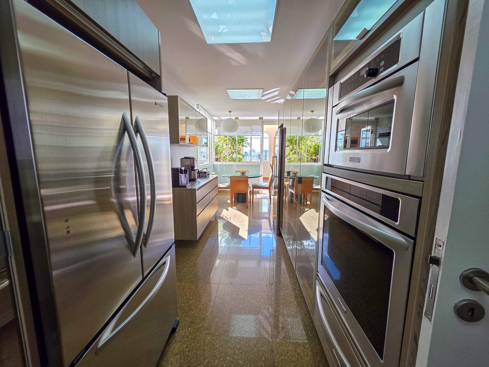 A cozinha está equipada com eletrodomésticos KitchenAid, todos permanecem no imóvel.
