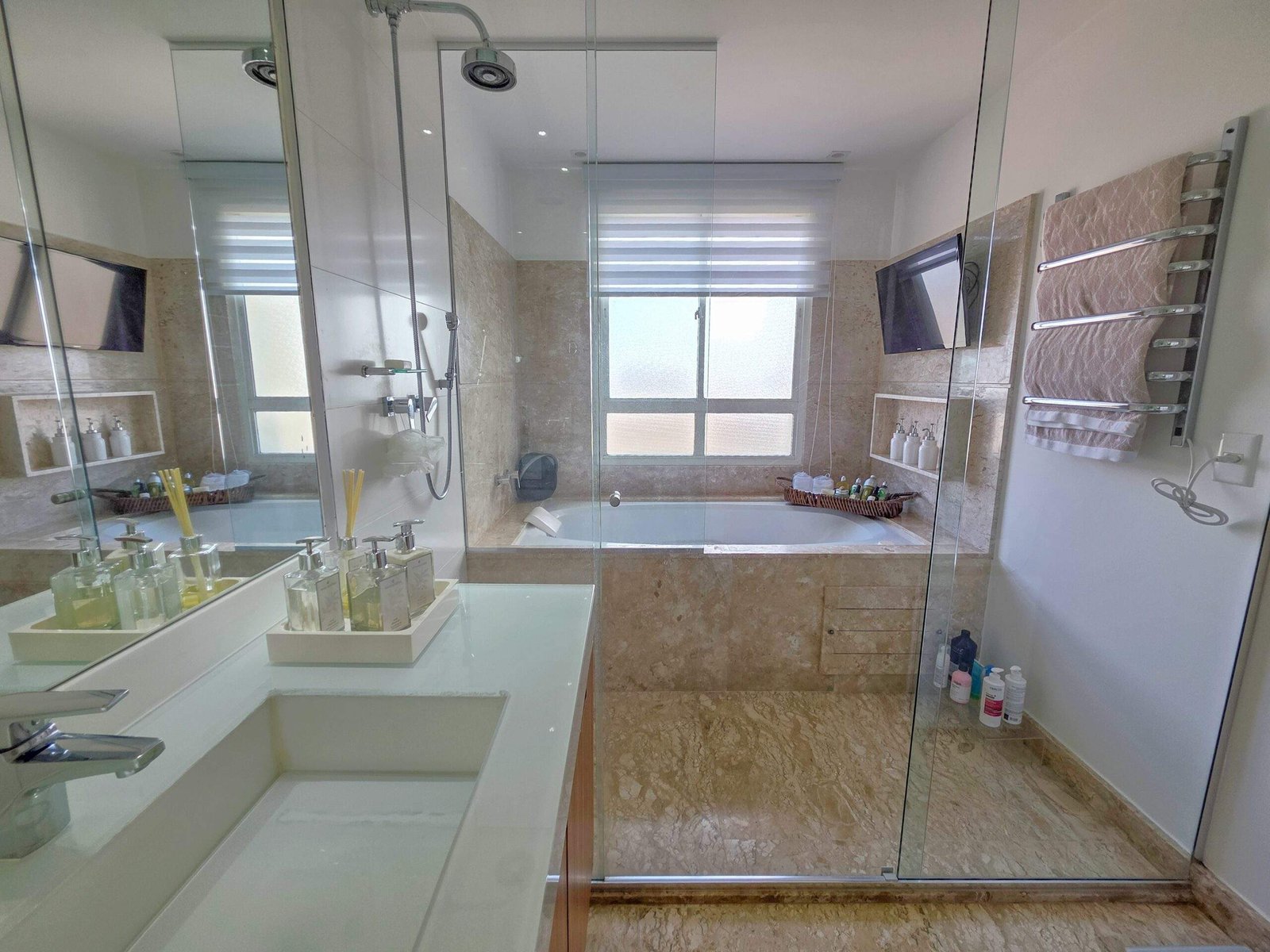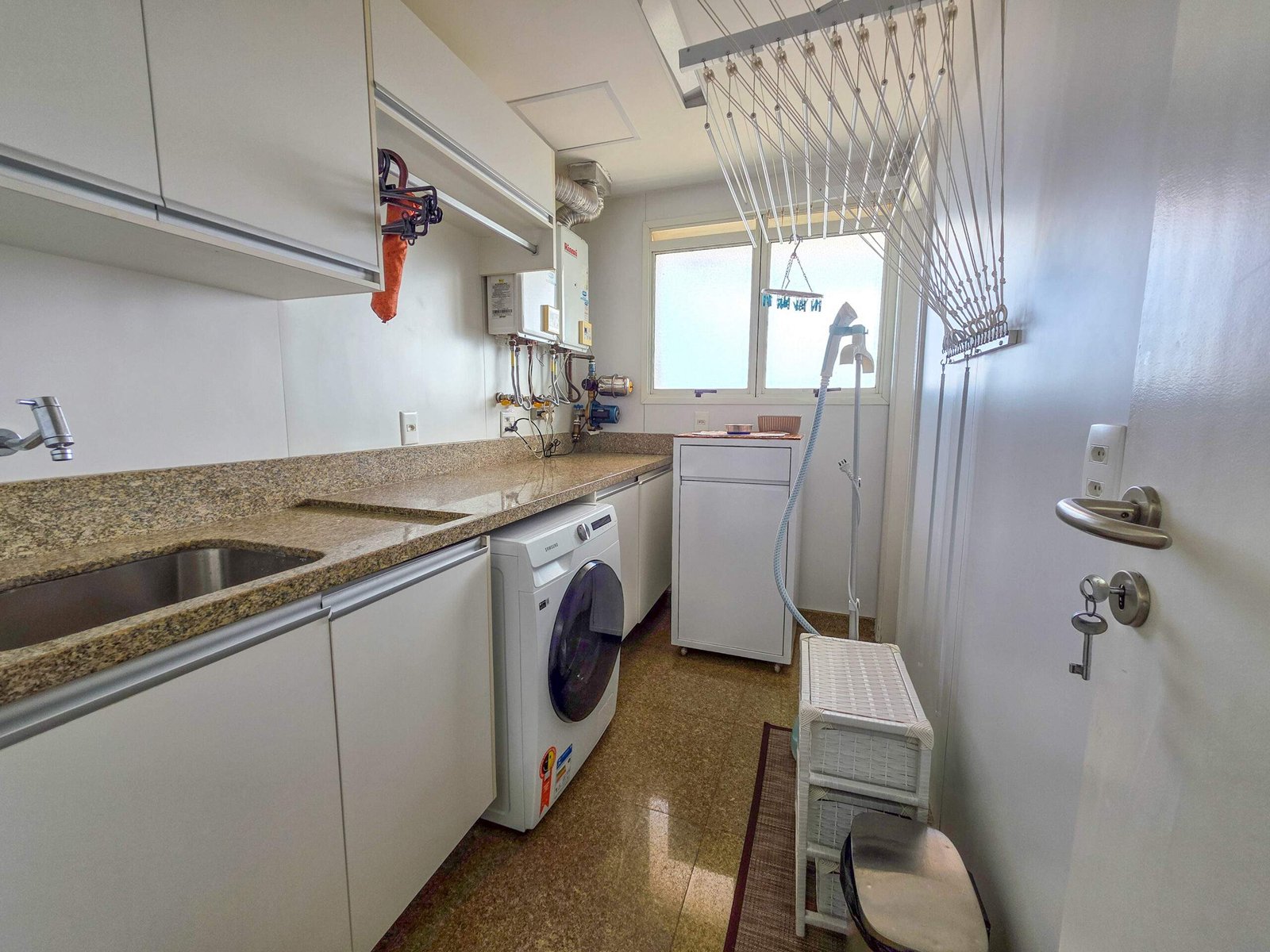 Os acabamentos incluem armários Florense, piso em madeira Indusparquet, ar-condicionados novos nos dormitórios, metais dos banheiros substituídos em 2022 e pias em silestone.