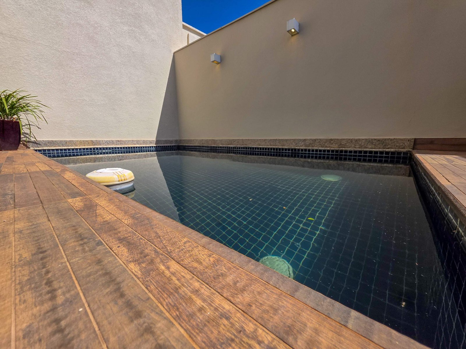 A configuração com a área social e a piscina no piso inferior torna os ambientes mais integrados e práticos no dia a dia, além de ampliar a sensação de espaço.