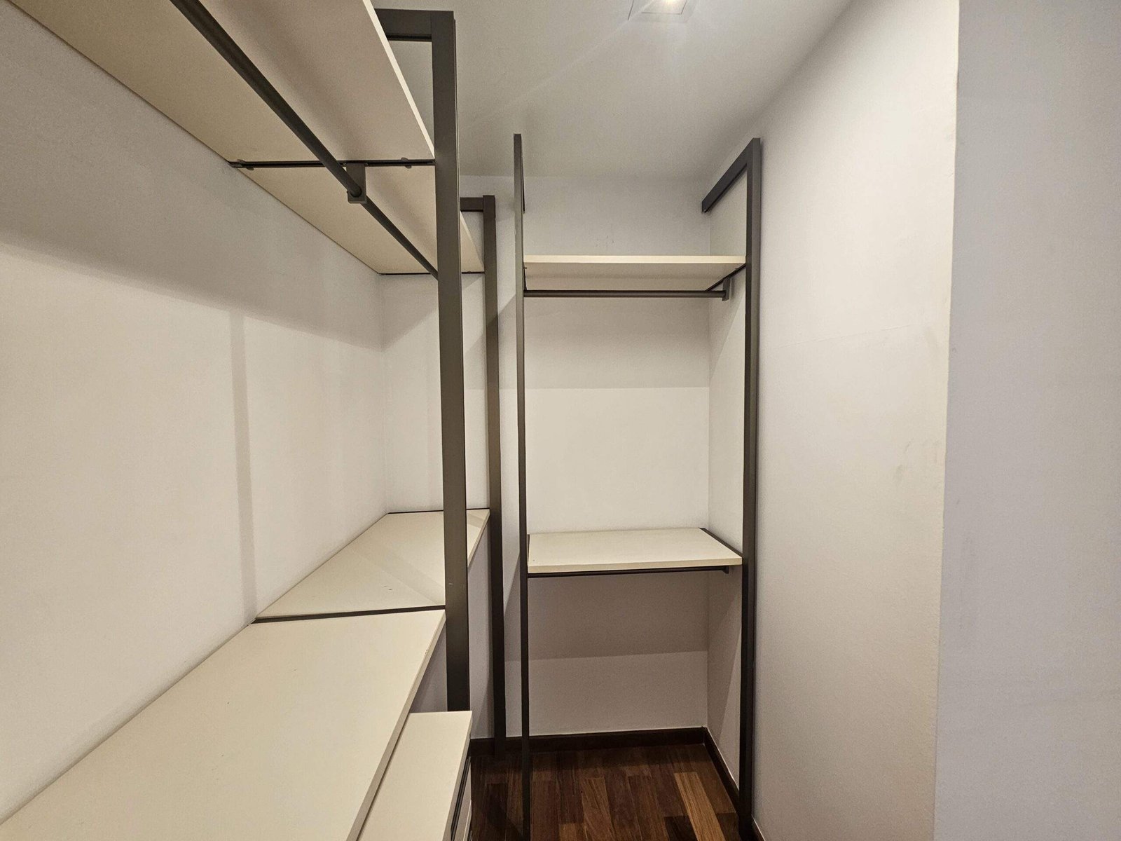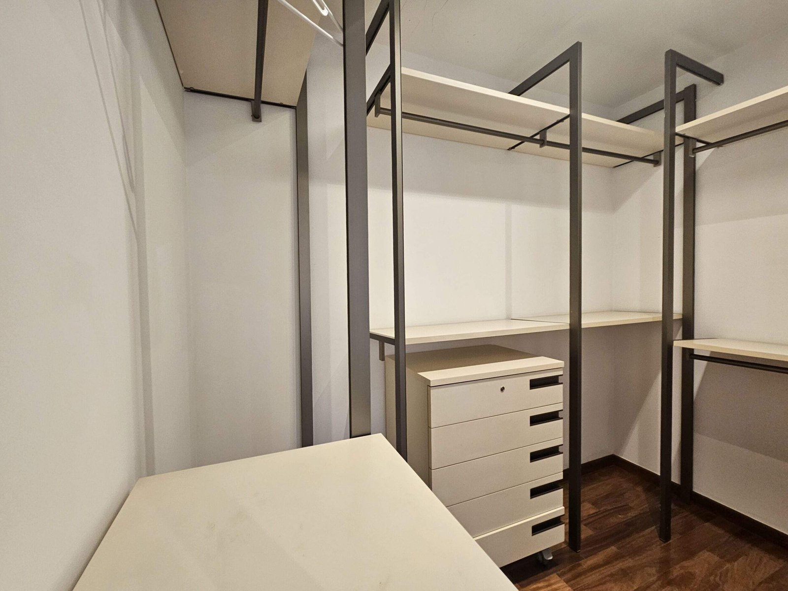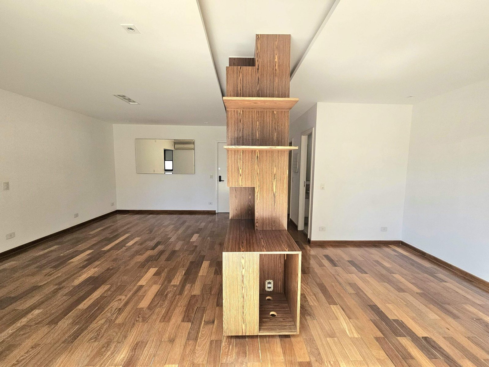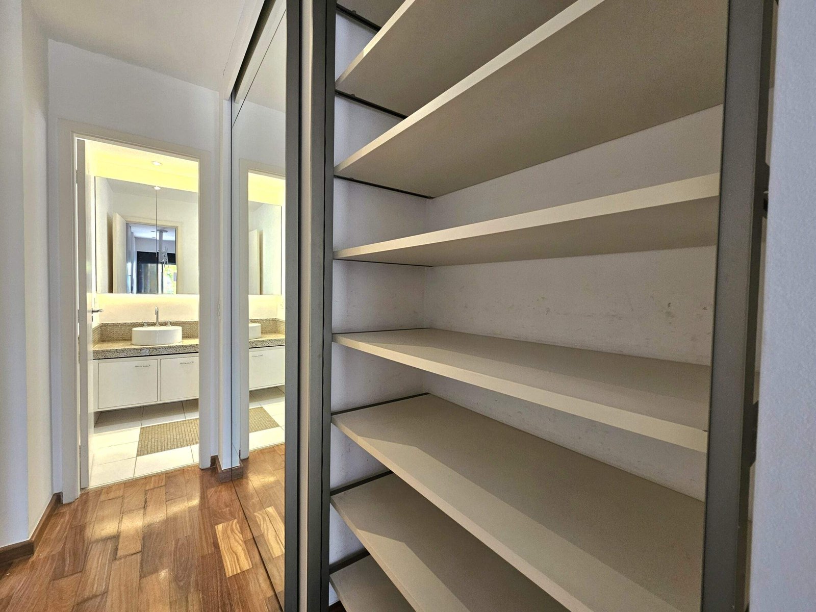 O segundo dormitório foi aberto para ampliar a área social e hoje funciona como escritório, mas pode voltar a ser suíte.