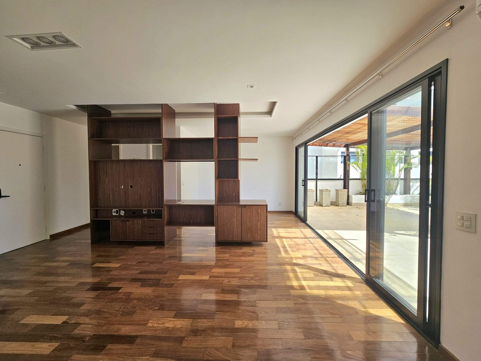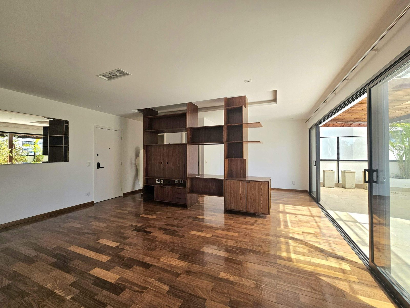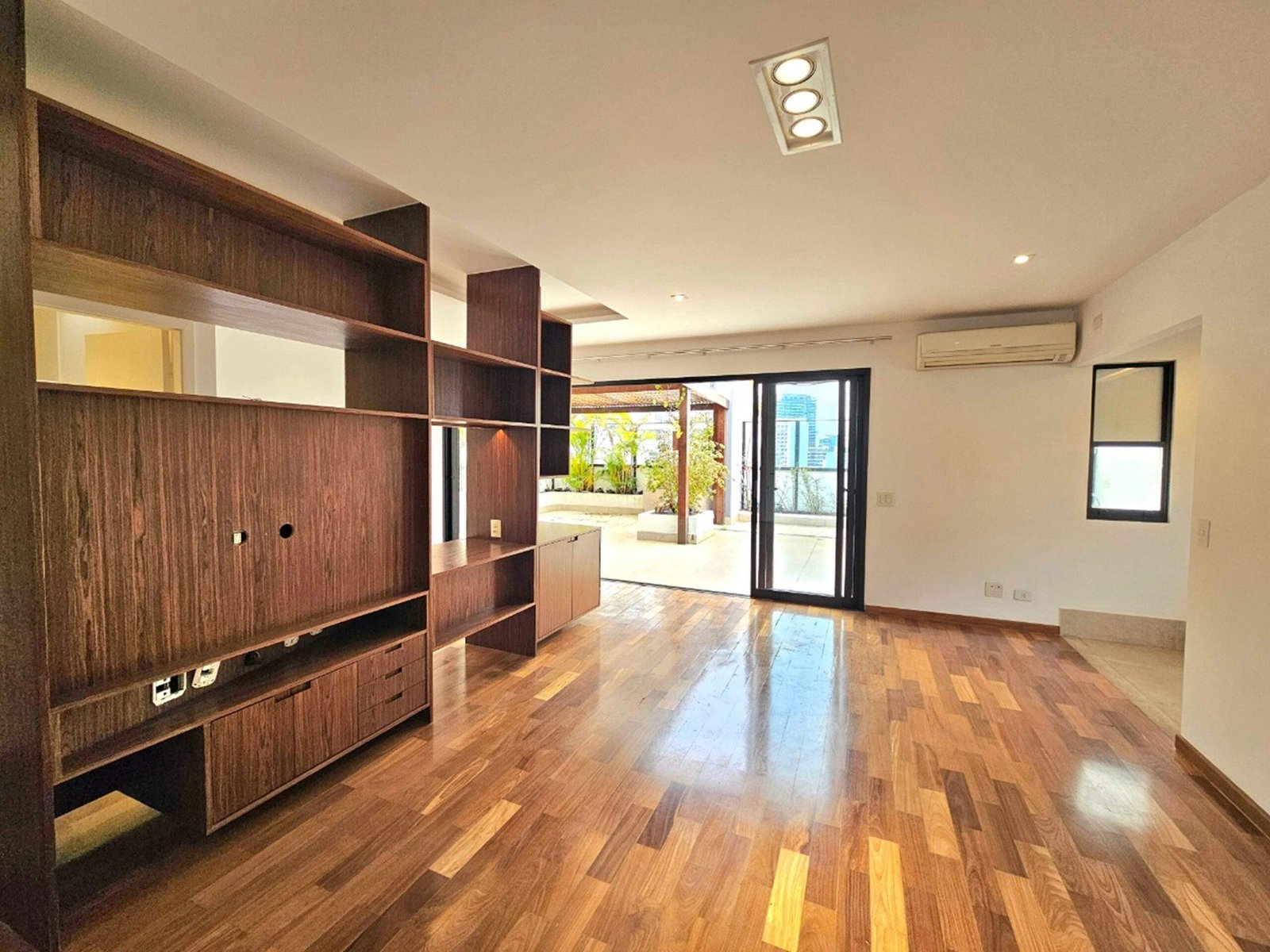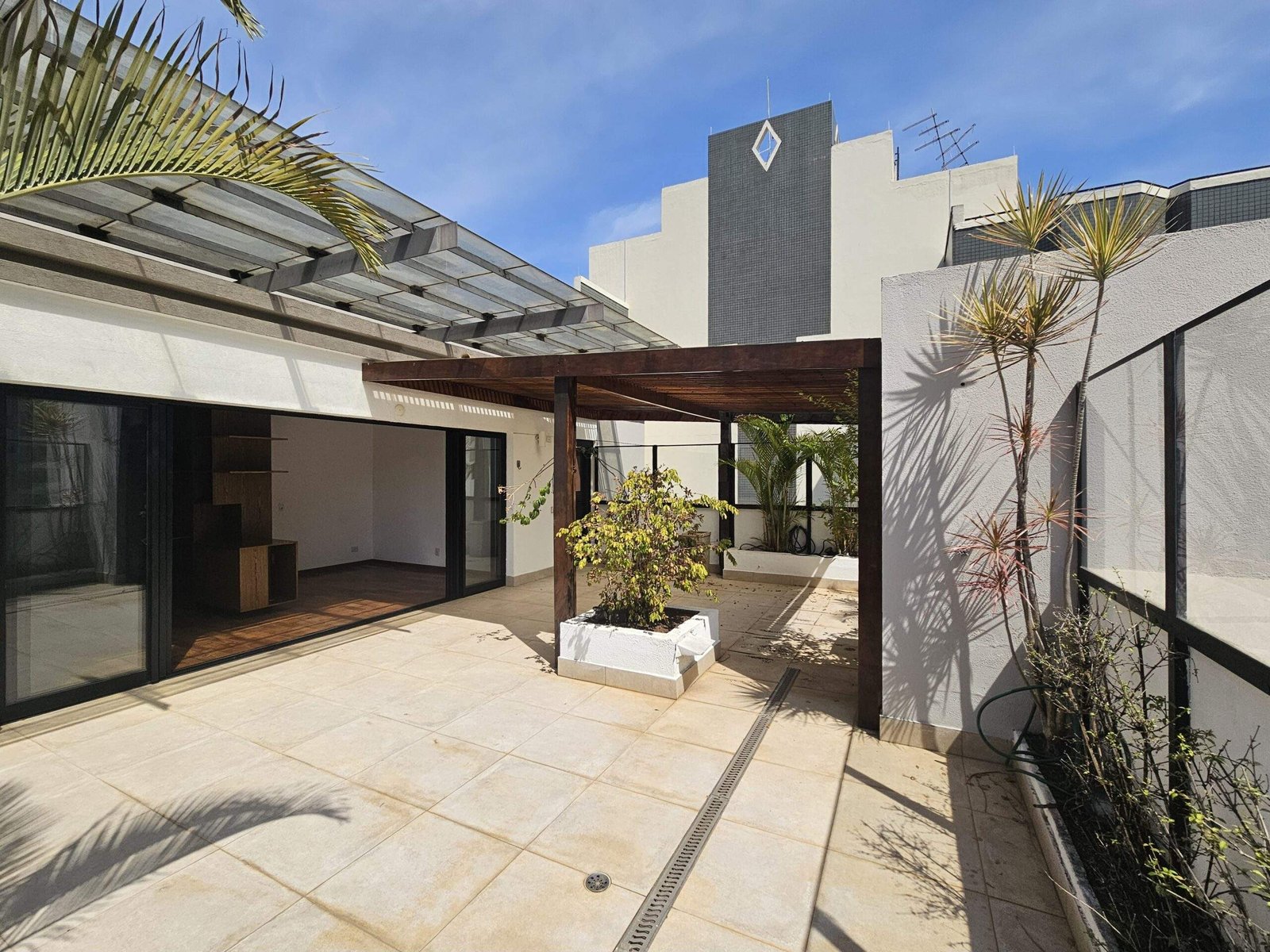 A varanda, com quase 60 m², é o ponto alto: ampla, ensolarada, com churrasqueira e espaço para instalar uma jacuzzi spa.