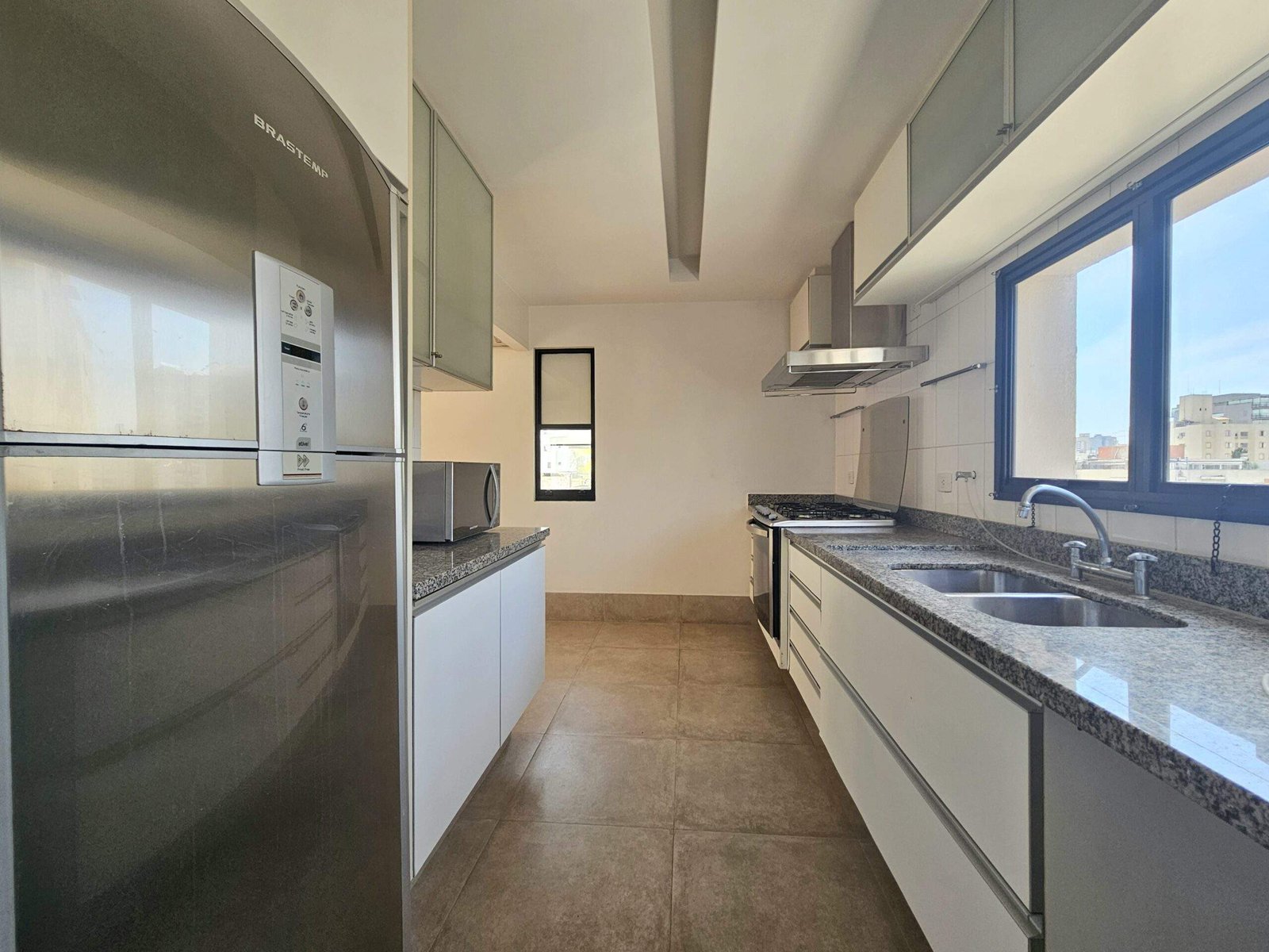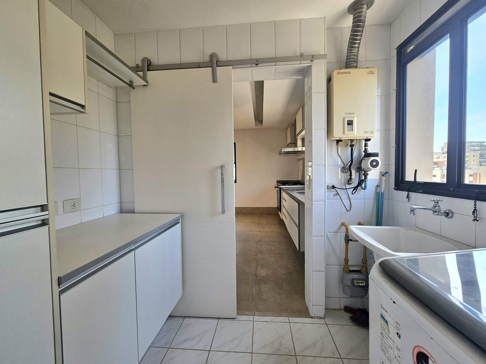 Cozinha com possibilidade de integração à sala, área de serviço e quarto e banheiro de serviço.