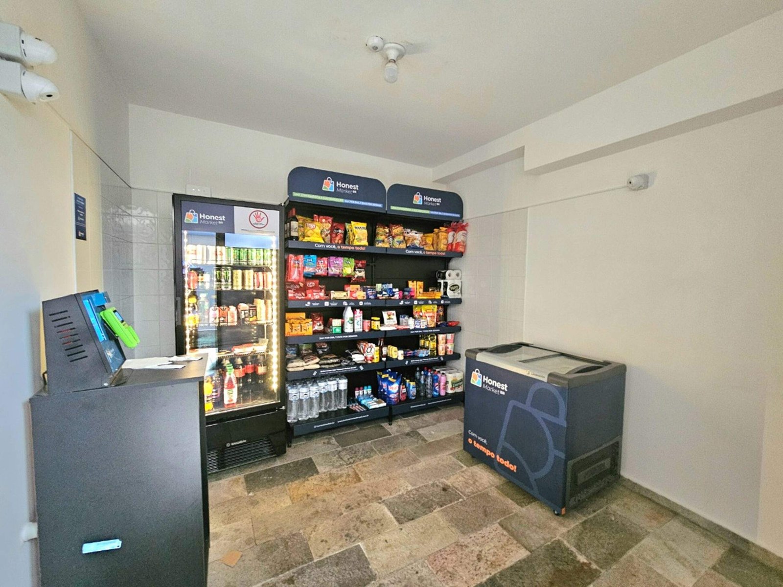 O condomínio oferece piscina, academia e até um mercadinho de conveniência.